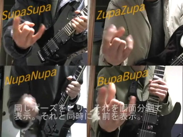ポーズについて 以前にも書きましたが、 【みんなで同じポーズをとって団結感を高めよう】というもの。 Youtubeに複数の奏者を繋げている動画がありますがあれは「最初から繋げるために作った」のではなく、 既存の動画を切り貼りしているだけ。(そうではないものもあるのかもしれないが私は未確認。) そういう動画とは違うんだぜ!とばかりに全員で同じポーズをとる。 これだけで印象が変わってくると思います。 そのポーズですがどんなものが良いでしょうか( ̄~ ̄;) ストレートにJerryCポーズ?(これをメロイック・サインと呼ぶらしい) それとも全然別のポーズ? メロイックサイン+α? それと、ポーズの時間、タイミングなどを決めねばなりません。 画面を分割して複数人のポーズを一気に見せるようになるのでどうせポーズをとるならビシッ!と揃っていると綺麗です( ̄▽ ̄) ポーズが決まったら私でもだれでもいいですが誰か一人がそのポーズをとる動画をアップし、 あとはそれに合わせて各自ポーズをとるようにすればタイミングばっちりだと思います( ̄▽ ̄) 名前について 奏者の名前、何にしましょうか( ̄~ ̄;) 「Played By SupaSupa」 のように「Played By ○○○○」とつけたいのですがその名前を募集。 「化膿ロッカー図」 「JAPANESE 39」 「ギター弾き隊!」 「ぬんたむふへぬろぬみねねつつはめ」 などなどw 何か名前が欲しいところです(^^) というわけでポーズと名前を募集! щ(゚Д゚щ)カモン! PR |