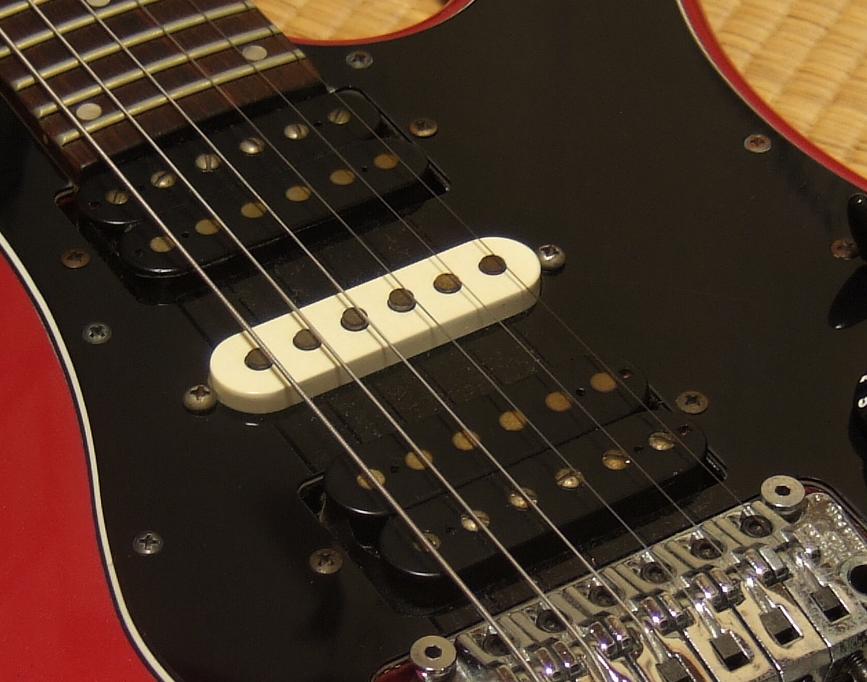 おぉこのギター、赤みが結構かっこいいじゃないですか~!フロントとリアがハムにしてあるんですね~。ちょっとシェクターみたいw ハムとシングル、確かに最初は良くわかりませんよね。シングルコイル型ハムバックピックアップもあるし、、(フェンダーとかにはめるためのものですね)。 センターのシングルコイルと今使ってるジャクソンのセンターと音の違いを聞き比べるのも面白いかもしれませんね。ギターが違うし当然のことながら、結構な音の違いが出ますしね。 僕はフェンダーを昔から使ってきているので、シングルの音が大好きですwあの素直じゃない感じが!(え ハムって厚みもあるしあったかみもあるし、なんというかやさしく包んでくれるサウンドと僕は勝手に解釈してるんですが、シングルはトゲトゲしていてジャリっとしていて・・・なんというか素直じゃないつんけんした奴です!でも、引き続けているとだんだん素直ないい子になってくる・・・ピックアップもなんだか好きな人を落とす付き合い方をしていますw |