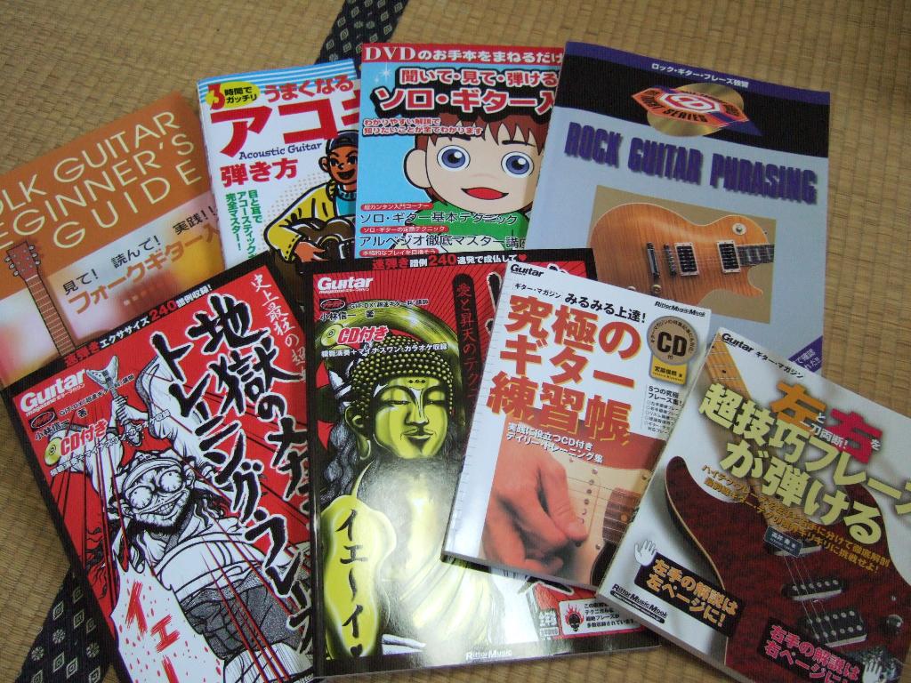 これはギター最初に買ったとき、ほぼ同時期に手に入れたヤツだと思います。(7年くらい前か) まぁ、それから1ヶ月後にギターが押し入れに7年間ほど入ることになったんですがね・・・(;´Д`) 引っ張り出してきました。 今読んでみるとこの教本かなりいい感じです(^^) おっ?今気付きましたがエレキの教本5冊中4冊がギター・マガジンのやつだwww |