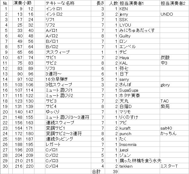 音と映像を別ですか、願ってもないことです(笑) コレで技術が騙せる(笑) 個人的にはイントロを希望です ギター暦の長い上手な方にココは大スイープとかをww てなわけで、参加希望です。 |