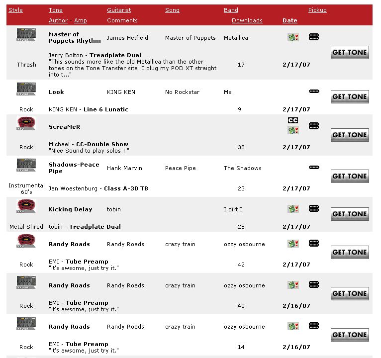PODXTでは他のだれかが作ったサウンドセッティングファイルをダウンロードしてその音作りをそのまま自分が利用できます。 それをするにはいろいろとソフトをダウンロードしてパソコンにインストールしなければいけません。 ギターは出来てもパソコン初心者な人はこのへんで結構つまずいてしまう場合があるようです。 まず見ていただきたいのがPODXTのメーカーであるLINE6公式サイトの以下のページ。 http://www.line6.jp/Support/ ここにいろいろソフトの情報が書かれています。 Guitar Port Line6 Monkey PODXT USBドライバー PODxtシリーズ バージョン3.0 などの項目をクリックしてその説明を読みます。 Line6 Monkeyというソフトを使えば各ソフトのダウンロード、バージョンアップを自動的に行ってくれるので便利です( ̄▽ ̄) PODXT本体のファームウェアバージョンアップもこのソフトでやったような気がします(うろ覚え) Guitar Portを使えばパソコンで音作りができ、 PODXT本体を操作するよりは圧倒的に楽になります( ̄▽ ̄) PODXTを持っていてパソコンも持っているのなら使わないのは損( ̄ε ̄。) 他の人が作ったサウンドセッティングファイル、 つまり拡張子が「.gpt」となっているファイルを開くのもこのGuitar Portです。 例えば、以前私が演奏したSIAM SHADEの「LIFE」もこんな感じで配布が可能。 「その設定教えてください」という要望があった場合、 PODXT同士ならファイルを渡すだけでOKなんですね~( ̄▽ ̄) そしてPODXTで使用できるセッティングファイルの拡張子はもうひとつあります。 「.l6t」というファイルです。(最初の文字は数字じゃなくて小文字のエル) この拡張子のファイルを開くにはLine 6 Editというソフトが必要になり、 このソフトも確かLine6 Monkeyでダウンロードできたと思います。 で、この「.l6t」ファイルが大量にアップされているページがあります( ̄▽ ̄) それがこちら 【LINE6 Custom Tone】 http://line6.com/customtone/ このページで自分が持っている製品(私の場合はPODXT)を選べばそれに対応するサウンドセッティングファイルが大量に出現します。 こんな感じに 「メタリカの音を作りましたー」 とかが簡単に表示されているので自分の求めている音を捜してダウンロードすればOK。 ダウンロード数も表示され、バンド名や曲名での検索も可能( ̄▽ ̄) 「CanonRock」で検索すればこんな感じ。 「USBアップデートの関係で壊れる」というのはそうそう起こることではないと思います。 起こるとすればアップデート中に本体の電源を切ったとかパソコンの電源を切ったとか・・・ そういうことをしない限りは大丈夫だと思います。 「絶対大丈夫!」とは言い切りませんが(^_^;) とりあえず・・・こんな感じでしょうか( ̄▽ ̄) 思い出しながら書いたのでどこまで正しいかは不明です、 何か重大な見落としor間違いもあるかもしれませんよ・・・(;´Д`) PR |