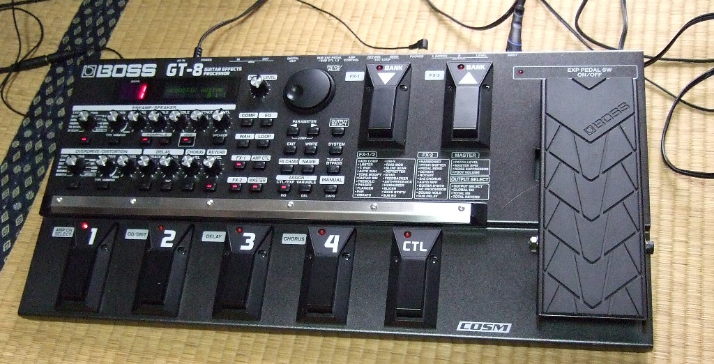 エフェクトを使うかどうかはわからないがPODXTではなく足での操作が可能なGT-8を一応持って行くことにする。 これは機材を買いあさっていた頃に入手した物。 今持ってなかったとしたら絶対買おうと思ってないだろうなぁ(^_^;) …宝の持ち腐れになるのが分かってるから(´・ω・`) 今回ギターをかついで遠隔地に出かけるのは初ということになる。 初でギター+マルチエフェクター んでこのGT-8、非常にデカイ。 アダプターを含めると5kg以上ある。ギターより当然重い。 …さて、どうやって持って行こうか(^_^;) リュックサックなどの背負う系に入れるのは無理だろう、ギターも担いでるし。 学生時代、修学旅行に持って行った大きめのバッグでも使うか(`・ω・´) |