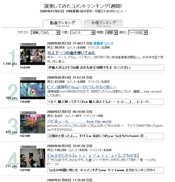 【75人で一つの曲を弾いてみた】が演奏してみたジャンルでの週間ランキングで再生数、マイリスト登録数、コメント数のすべてにおいて第1位を獲得っ!m9つ`Д´)