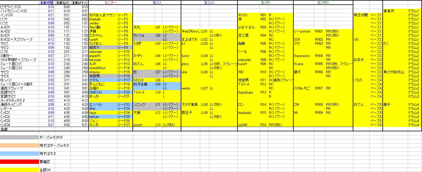 ジャック・ブラックのようにあそこまでロックに生きてみたいのぅ( ´ー`) というわけで(どういうわけだ)左手だけでロックしようぜ!ROCKしようぜ! 地獄のメカニカル・トレーニング・フレーズより、『地蔵より愛を込めて』0.7倍速 左手オンリー キョロちゃんさんに教えていただいた「輪ゴム巻き」をやってかなりノイズが消えました( ̄▽ ̄) ありがとうございます。 あ、圧倒的にリズムがわからん('A`) 酷いところは1秒くらいずれて・・・ しかしとにかくこれでほとんど譜面は覚えた。右手が使えるようになったら残りのタッピングを覚えればOK(`・ω・´)b >marumusiさん 辛口をお望みですか( ̄ー ̄)ニヤリ では私自身が出来るかどうかは別にして書きます(笑) ・先走っているところがある(特に最初のリフ) ・ビブラートをもう少し使った方が良いと思う ・グリッサンドやスライドを絡めた方が良いと思う 凡ミスは弾きこむことで解消されると思います。 それにしてもスウィープが他のテクニックに比べてレベル高いですねΣ( ̄□ ̄;;;)!! 以上、自分を棚に上げた辛口コメントでした(^_^;) >くろのさん はい~ファイル受け取りました( ̄▽ ̄) 全部OKです~。 So-taさんはどうなってますかー? 日曜日までに連絡がない場合は申し訳ございませんが削除ということになりますので早急に連絡をm(_ _)m カッツォさんと吉四六さんもお早めに~。 |