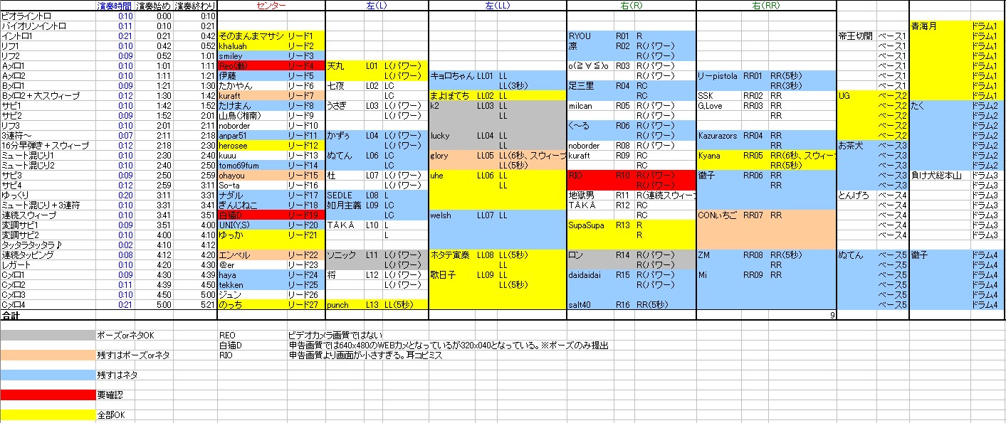 ファイルの提出がなく、さらに何の連絡もなかった場合は不参加とみなし、みんカノ参加者リストから外します。 >うさぎさん チェロ等のご友人は大丈夫そうです? >山鳥さん ビデオカメラからPCへの取り込みは解決しましたか? >Reoさん ビデオカメラからPCへの高画質取り込みは解決しましたか? >RIOさん ビデオカメラからPCへの高画質取り込みは解決しましたか? >luckyさん ポーズOKですよ~( ̄▽ ̄) ネタはああいうのがいいんですwどのあたりを使うか迷いますねこれは( ̄▽ ̄) 演奏が短いです。約半分しか演奏してません(^_^;) luckyさんの担当は2:11~2:30ですから今回提出された音からさらにブリッジミュートしながらのフレーズへと続きます。 そこまでの耳コピは完璧です~(^^) >k2さん ポーズは新しいのを使うんですね、了解です~。 演奏、ポーズ、ネタOKなんですが音声ファイルがありません(^_^;) おそらくただの提出忘れだと思いますが録音してなかったら・・・((( ;゚Д゚)))ガクガクブルブル ネタは確かに面白くありません、面白くないかわりにこれは・・・・こわっ!∑(=゚ω゚=;) !! そ う き た か w >りーpistolaさん 受験がんばれ!!(`・ω・´)b ・・・・ってもう受験終わってるか _| ̄|○ >まよぽてちさん 今回はOKです~、これでまよぽてちさんは全てOKです(^^) FPS3本持ってますがどれも目が超疲れて長時間遊べないのが玉にきず、昔はそんなことなかったのに( TДT) >たけまんさん ネタは練習風景ですね、了解です~。 >如月主義さん あらら、それは困った事態(^_^;) ではどうしようもなくなったときはミステイクを( ̄▽ ̄) >tekkenさん 確認しました~、OKです( ̄▽ ̄) 残すはネタのみです(`・ω・´) >UGさん いやいやいや、これは立派なネタだと思います(^^) 3秒という限られた時間内でやるネタにはぴったりかと( ̄▽ ̄) >heroseeさん 確認しました~。これで全てOKです~。 だんだんと表が黄色に埋まってきましたね~。 >kuraftさん もしかしたら忘れているかも知れないので一応w kuraftさんはR09も担当ですよ~( ̄▽ ̄) 「お仕事お疲れ様」コメントありがとうございます~( ̄▽ ̄) 返信はしてませんがちゃんと読ませていただいてますm(_ _)m 昨日の残業もあり、今朝は非常に眠かった。 しかし、1ヶ月ぶりにコーヒーを飲むことでいつも以上に目が冴えてくるという(笑) 普段飲んでなかったらこういうときに助かるなぁ( ´ー`) 深夜残業という特殊環境下で普段しない話を同僚としたりする。 するとギターをやっているというかたが!∑(=゚ω゚=;) !! しかも、ギター、ベース、ピアノ、ドラム、ヴォーカルもやっているマルチプレイヤー。 さらに!! 私の自宅から徒歩3分、全力疾走1分以内という超ご近所さん(笑) 意外なところに意外な人がいるものだ(^^) |